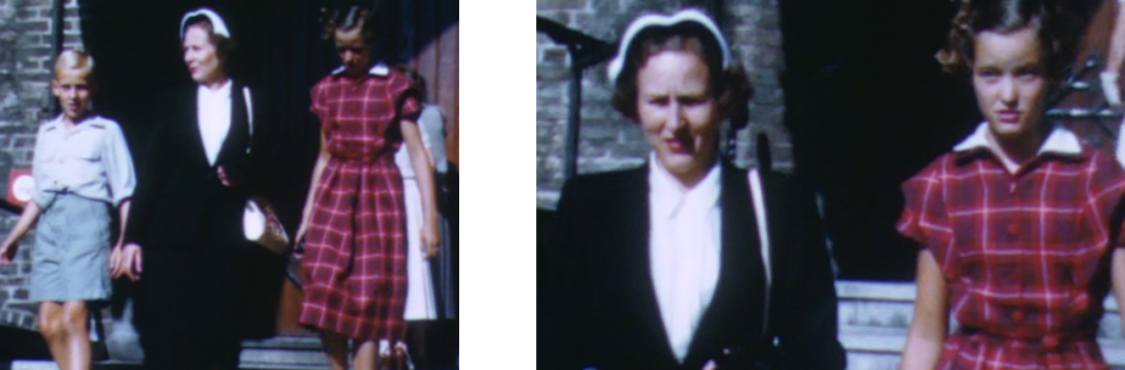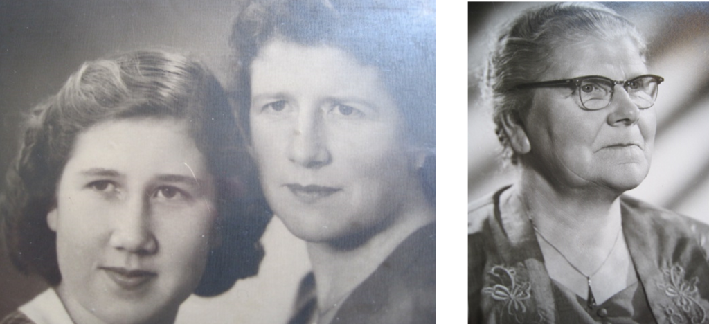 Twee uitsneden van de schoolfoto van de O.L.S. Ommelanderwijk in 1942, met op linker foto bij pijltje Willie en op rechter foto links Metta en daarnaast Alie Schreiber.