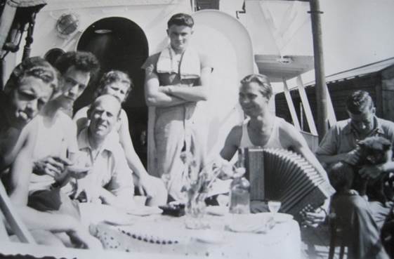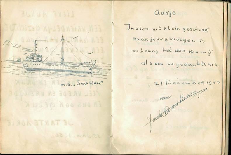 Die avond en nacht aan boord van de MOBY DICK zat ik Frankie helemaal uit te horen over zijn zus en keek ook al verder: eventueel trouwen. Tja, zei Frankie, dat kan een probleem worden. Pa wil dat al z’n dochters trouwen met vrome katholieke mannen en daar val jij niet onder. Dat leek mij geen groot probleem, ik zou naar een pastoor gaan en zeggen dat ik katholiek was geworden en of hij mij een briefje kon geven om dat te bevestigen. Helaas werkte dat niet zo. Catechismus, misdienaar enz, enz. Maar goed ik was verliefd en zag geen beren op de weg.
