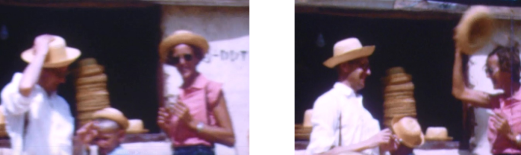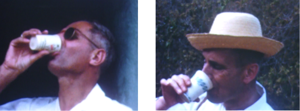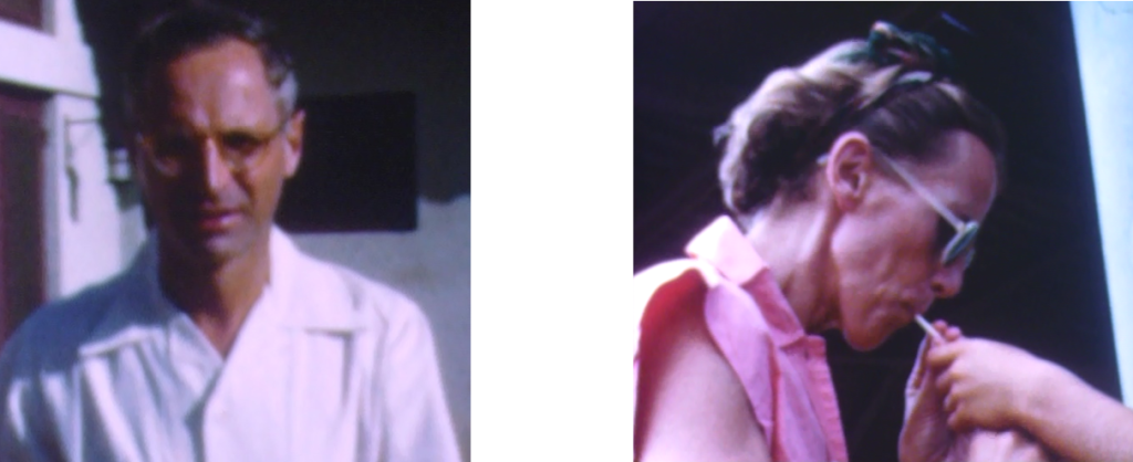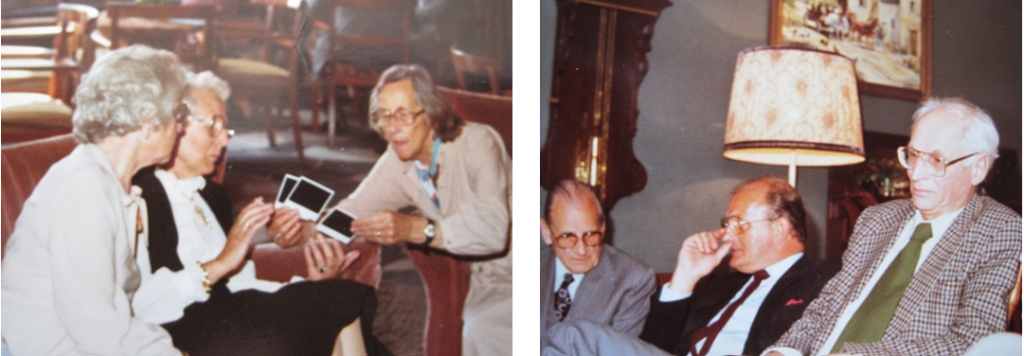 Lenie met pijp: linksboven op 19 maart 1986 in Renske’s portocabin huisje in Al Ain, UAE, ter viering van haar Amerikaanse FMGEMS examen van R. Rechtsboven in Hilversum met Nella, de dochter van Jouke en Anneke. Onder tenslotte voor het portocabin huisje, met Renske’s  vriendin Chris.