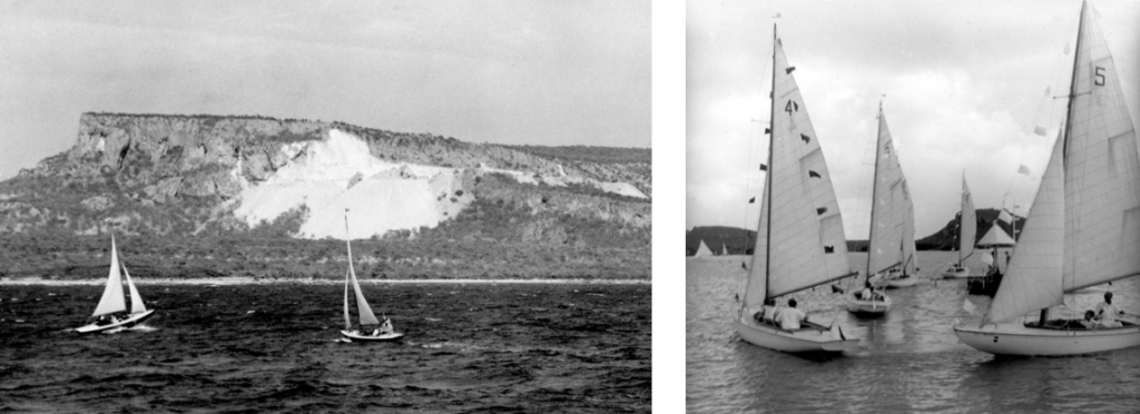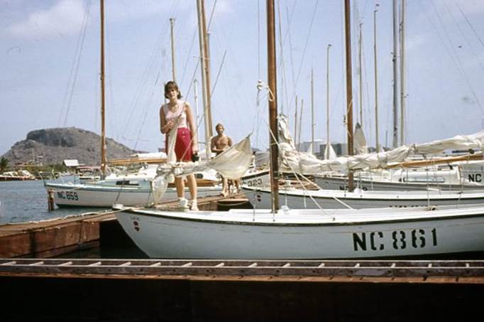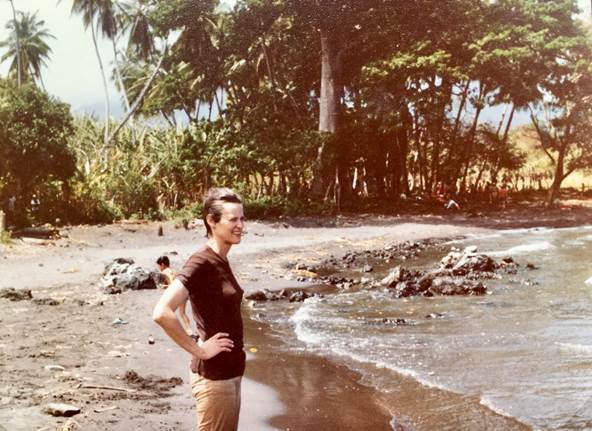 Tanny op de sturdy SJOERD tijdens een vakantie/annex sollicitatiepoging op Curacao; 1973.