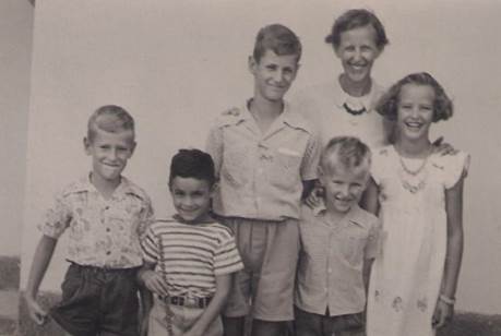 Met de vier kinderen.