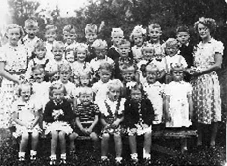 Op een schoolfoto uit1942 treffen we de drie Schreibertjes onder de kleine tweehonderd scholieren. Het bijbehorende verslag vertelt van een leuke school met terugkerende feesten en schoolreisjes, maar ook van een beperking van het aantal lesuren van 26 naar 20 per week vanwege brandstoftekort. Ook het aantal leerkrachten liep de volgende jaren terug naar drie, waardoor de tweede klas maar drie dagen per week les kon krijgen en de andere vier.