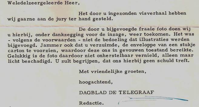 Ontvangstbriefje van de redactie van De Telegraaf; 12 februari 1971.