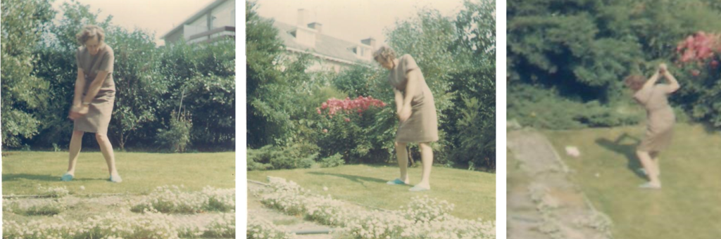 …en Lenie oefent er haar swing; rond 1968.