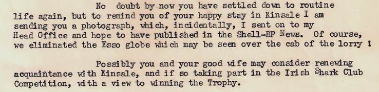 Tekst uit felicitatiebrief van Ierse Shell: “we hebben het Esso logo maar gefotoshopt”; 7 oktober 1965
