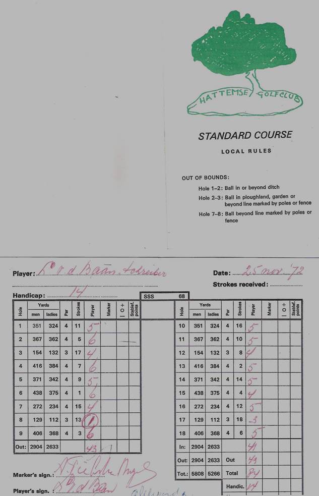 Lenie slaat een hole-in-one op de 8e hole in Hattem; 25 november 1972.