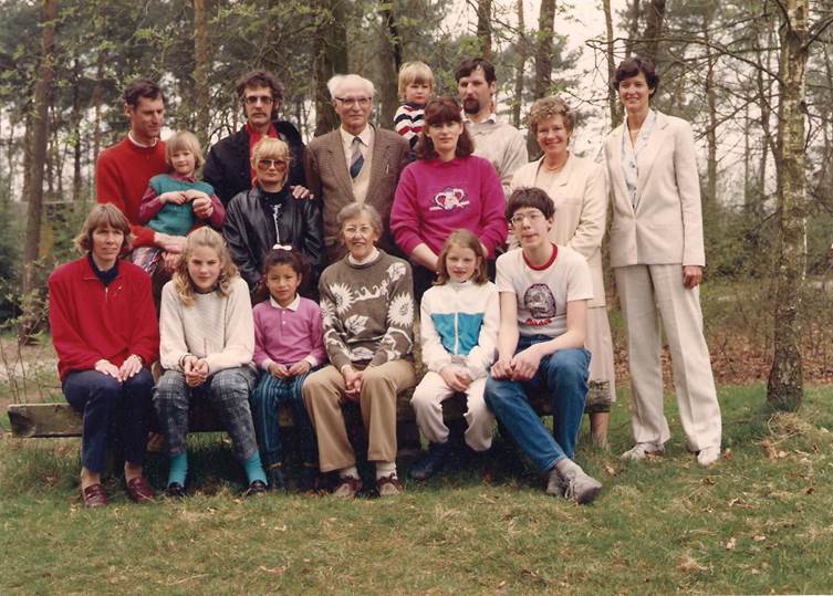 Met alle familie, v.l.n.r. op voorste rij: Anneke, Mathilde (dochter Sjoerd), Catalina (dochter Sjoerd), Lenie, Stella (dochter Dietert) en Maxim (zoon Dietert); middelste rij: Nella (opgetild door Pappa Jouke), Wiesia, Tanny, Chris (vriendin Renske) en Renske; achterste rij: Jouke, Dietert, Sjoerd, Sjoerd met Robert op de arm.
