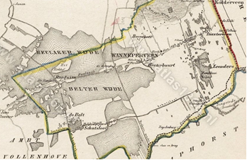 Nog op een ander punt dient het onderzoek verdiept te worden door bestudering van oude kaarten van de kop van Overijssel. Aan de hier gereproduceerde kaart te zien, liep er vroeger ten zuidoosten van het Meppeler Diep een riviertje waarvan nog enige stukken over zijn, namelijk de Oude Stroom en het Doosje Rak. Het kan haast niet anders of dit riviertje moet de voortzetting zijn geweest van de Wold A, die van het oosten af Meppel binnen komt. Indien dit zo is, dan moet deze “Oude Stroom” vroeger Wold A of iets dergelijks genoemd zijn geweest. Maar dan wordt het ook waarschijnlijk dat de naam Bewouda of Bewolde, die Johannes Jans respectievelijk zijn zoon Jan Johannes voeren[2] van dezelfde buurt afkomstig is. Zou dit het geval zijn, dan duidt dit er op dat toch Johannes Jans inderdaad een afstammeling is van Cornelis Jans.