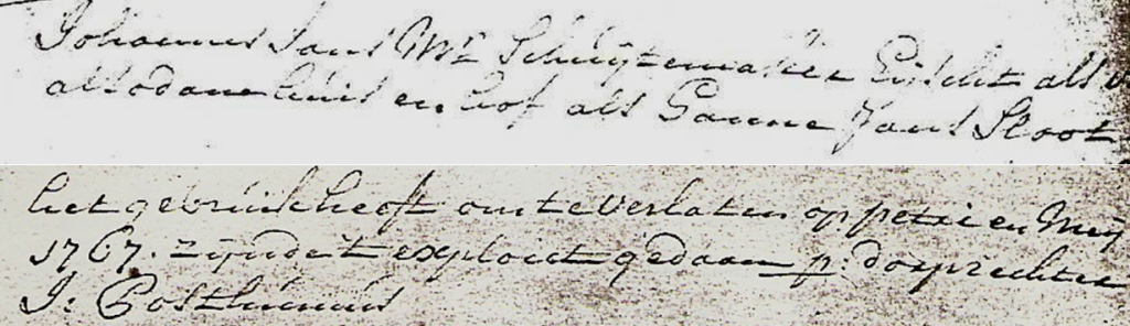 Johannes Jans, Mr. Schuytemaker eist ontruiming van een huis; 1767.