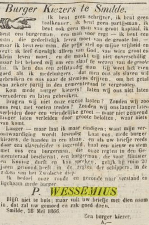 [2] Bij het schrijven van deze sectie is dankbaar gebruik gemaakt van de notities van de heer G. Ax (Leeuwerikstraat 6, 9422 KC Smilde, tel. 0592-412995), die in het kader van zijn onderzoek naar de bevolking van Smilde in de negentiende eeuw veel zinvolle gegevens en inzichten heeft verzameld.