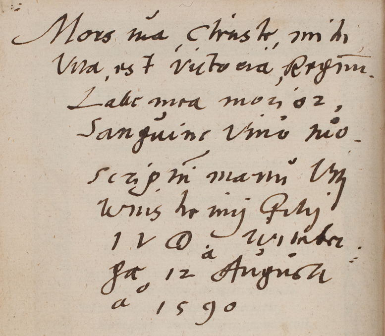 Albuminscriptie door Vitus Winshemius uit 1590. Is het ‘de onze’ of betreft het een Duitse naamgenoot?