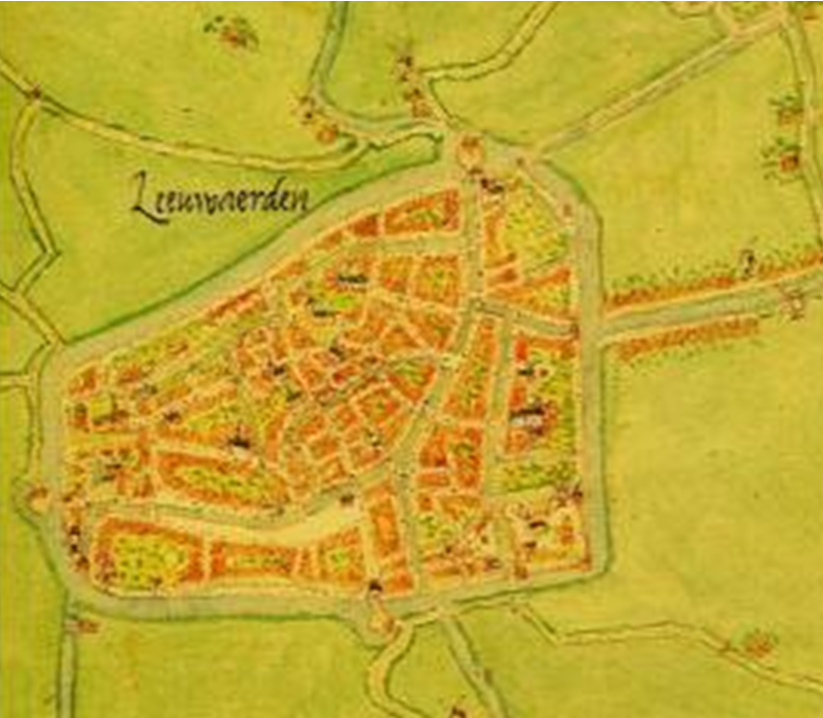 Stadsplattegrond van Leeuwarden door Jacob van Deventer, ca. 1560.