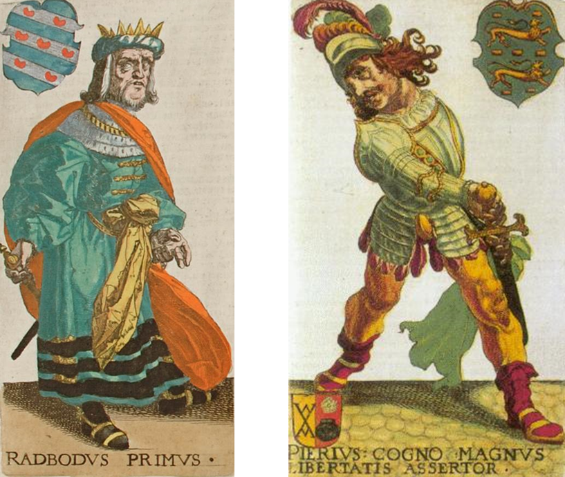 Koning Radboud (links) en Grutte Pier (rechts), volgens de Kroniek van Friesland van Pierius Winsemius.