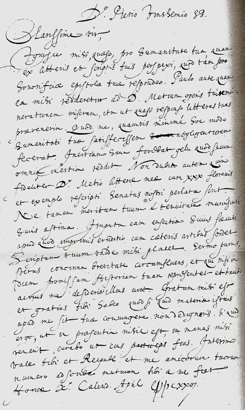 Pierius onderhield een wonderlijk uitgebreide correspondentie met velen op vaak grote afstand. Zo resten ons brieven die hij schreef aan Johan van Foreest, die hij vrij stellig kende uit zijn Leidse studietijd. Johan, die in latere jaren tot grote hoogte steeg in de V.O.C. in Hoorn, had zich in oktober 1603 ingeschreven voor de theologische studie. Wij kwamen hem al eerder uitgebreid tegen als “beschermheer” van onze rechtelijn voorvader Dominicus (zie secties 1a en 1e) en – na diens overlijden – van zijn liefhebbende Marietje (sectie 4) en nog weer later van hun zoon Dominicus Ceylon (sectie 4b). Het heeft er schijn van dat hij als vaste Winsemius-correspondent kon gelden.