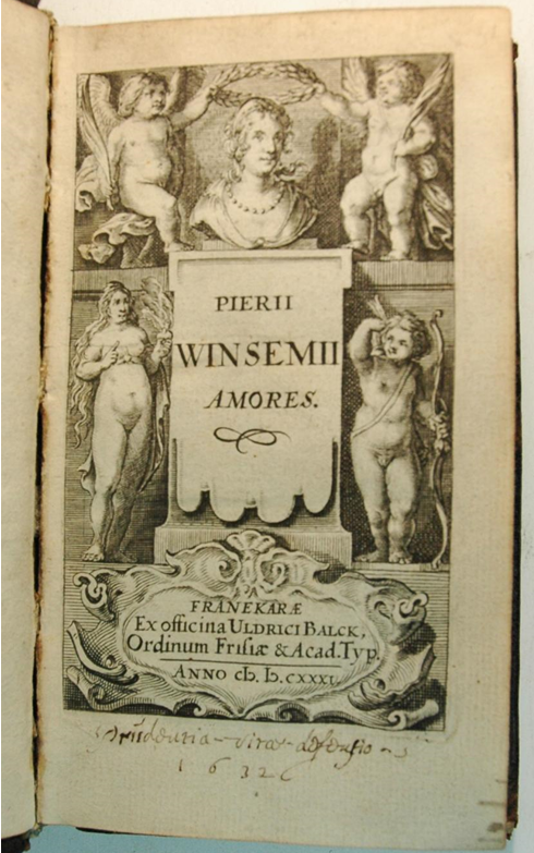 Op het schutblad vóór het werk van Guido Guidi (Vidus Vidii) staat aangetekend: ‘Sum/ Ex libris/ Menelai Winsemii D. Med./ Anno Christi MDCXVI’; op de keerzijde noteerde bibliothecaris professor Sixtinus Amama: ‘Donum/ Clarissimi Viri/ D. Menelai Winsemi/ S.S. Med. Doctoris &/ Professoris ordin./ 1626/ X. Martii.’